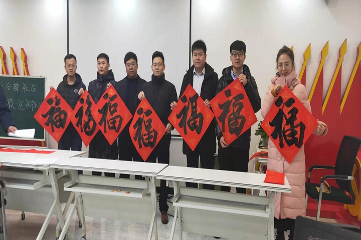 貼“福”字,是迎新春必不可少的傳統(tǒng)項(xiàng)目。每年年末,不少書(shū)畫(huà)藝術(shù)家都會(huì)走出書(shū)齋,以送“福”的形式來(lái)祈福新年。為弘揚(yáng)中華優(yōu)秀傳統(tǒng)文化,迎接新春佳節(jié)的到來(lái),近日,恒大名都社區(qū)黨支部邀請(qǐng)山東省商業(yè)職業(yè)技術(shù)學(xué)院書(shū)畫(huà)教研室曹懷義主任及多位社區(qū)書(shū)法愛(ài)好者走進(jìn)濟(jì)南幸福城小區(qū)揮毫潑墨,為居民送“福”到家。能源集團(tuán)機(jī)關(guān)黨員、入黨積極分子等20余人參加此次活動(dòng)。