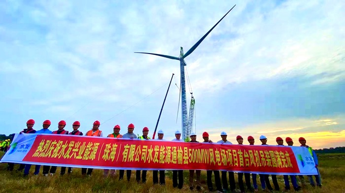 水發(fā)能源通榆縣500MW風(fēng)電場首臺風(fēng)機(jī)順利吊裝完成 項(xiàng)目建設(shè)全面進(jìn)入安裝施工階段